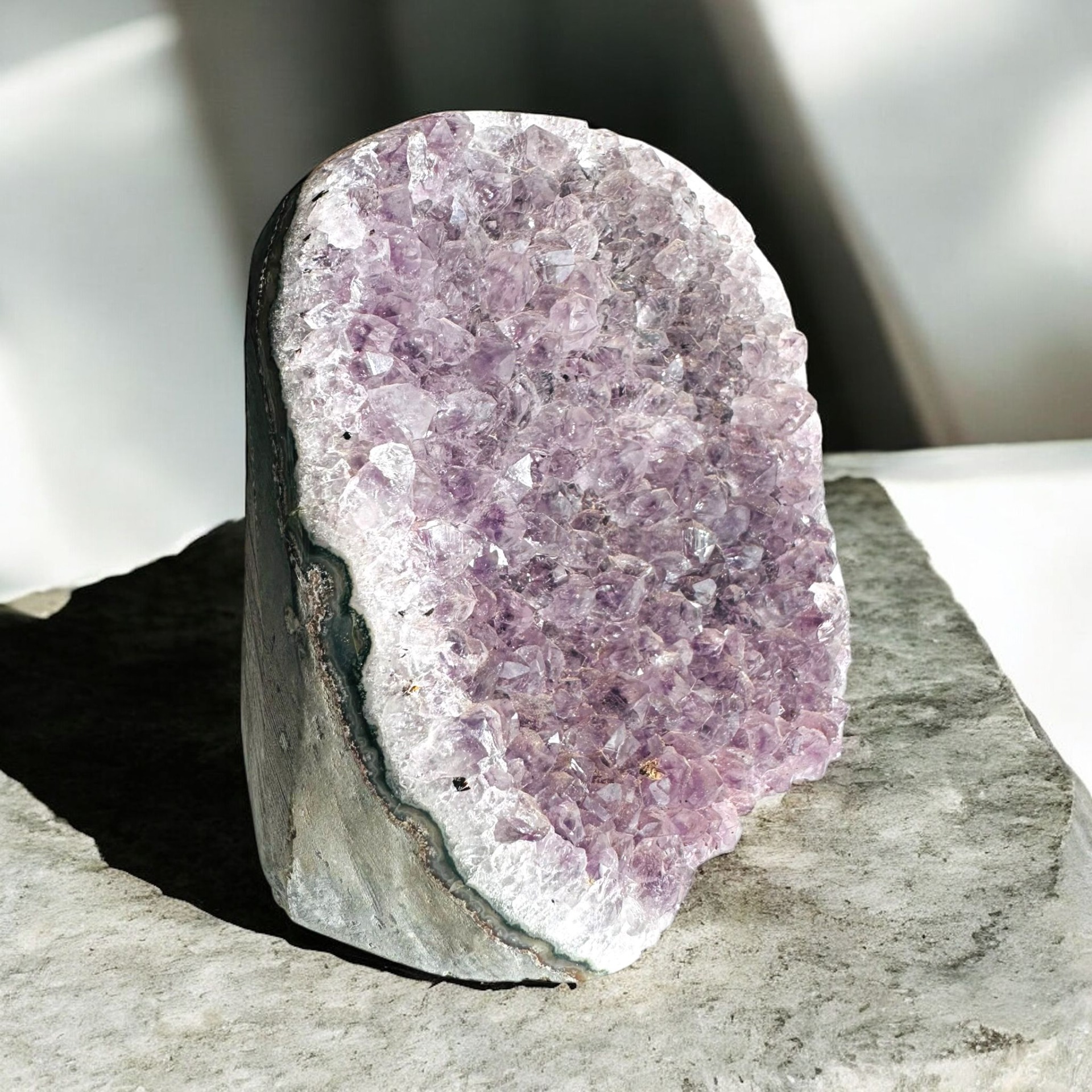 Ametyst je kameň pokoja a ochrany, ktorý dokáže harmonizovať priestor a priniesť doň čistú, láskavú energiu. Táto geóda je jedinečný prírodný originál – kúsok, ktorý ozdobí váš domov a stane sa vaším každodenným zdrojom pokoja a vnútornej sily.
