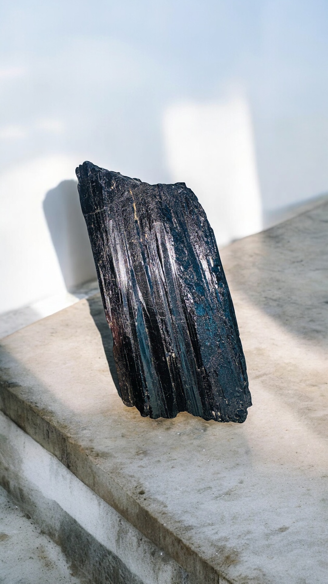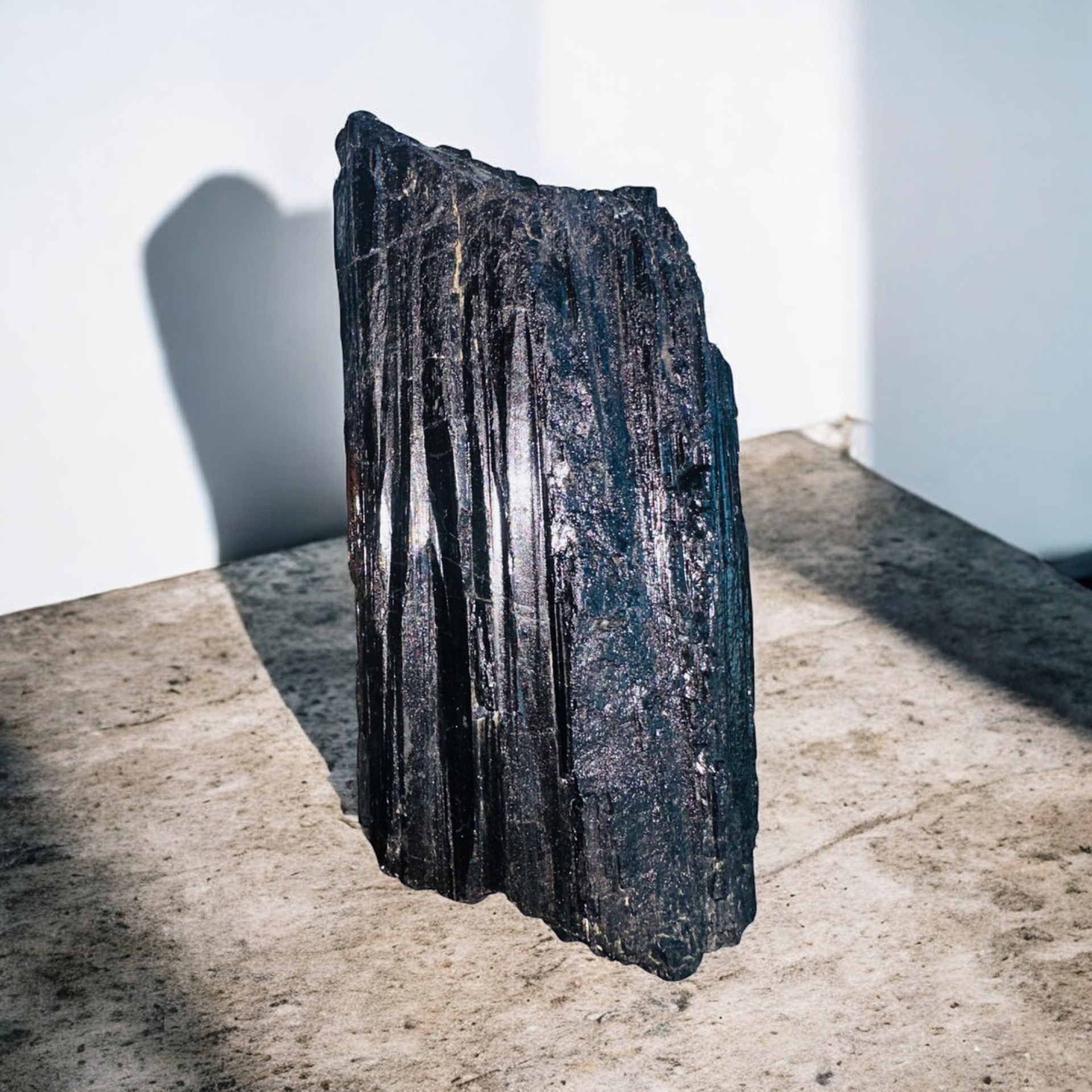 Tento masívny surový čierny turmalín (skoryl) je jeden z najsilnejších ochranných minerálov, aké príroda vytvorila. Nie je len "ezoterický" – jeho účinky sú dlhodobo skúmané aj z fyzikálneho hľadiska.