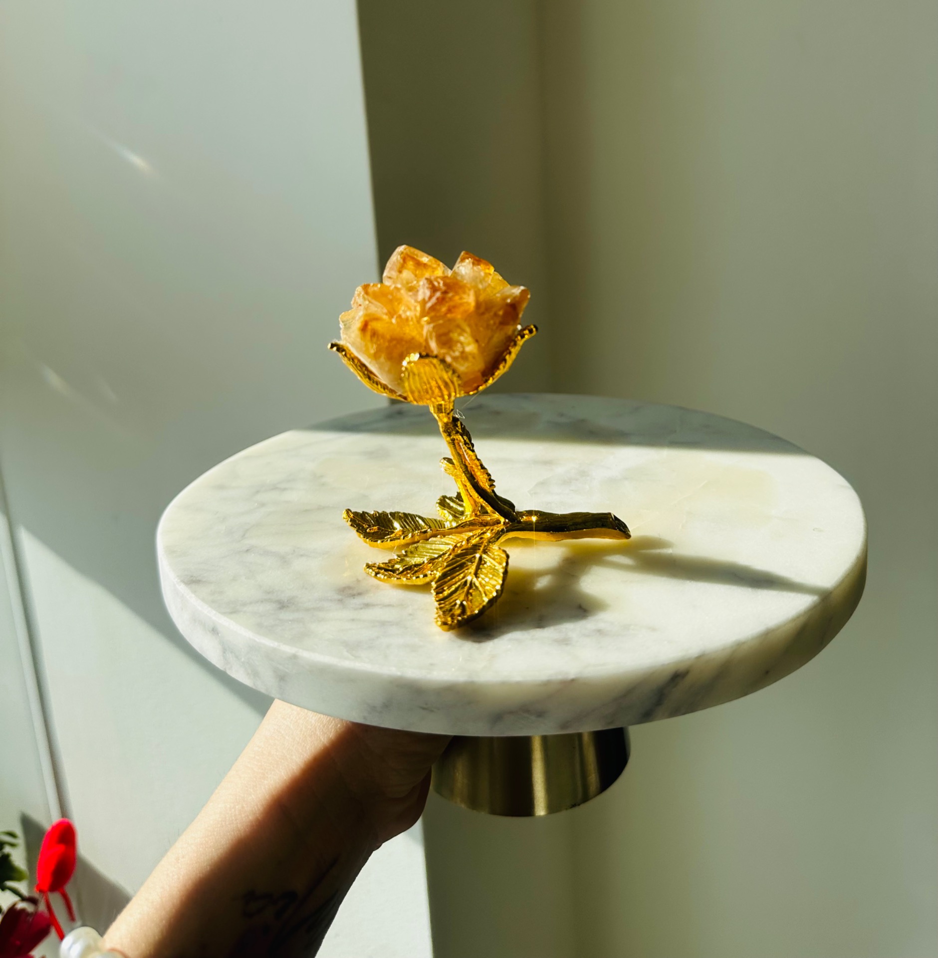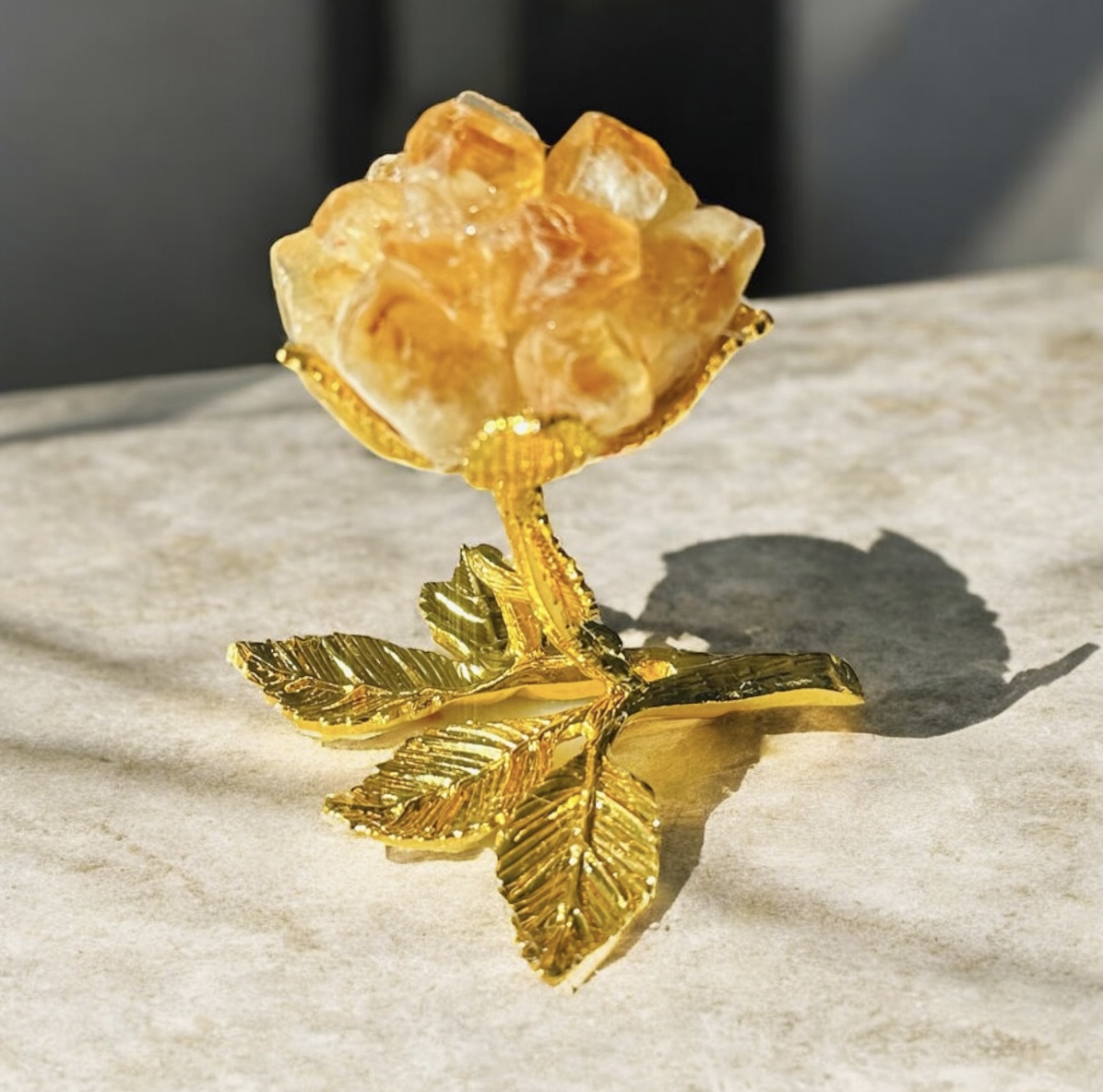 Každý kus je originál – prírodná štruktúra citrínu sa môže mierne líšiť, čo robí z každej ruže jedinečný kúsok.
