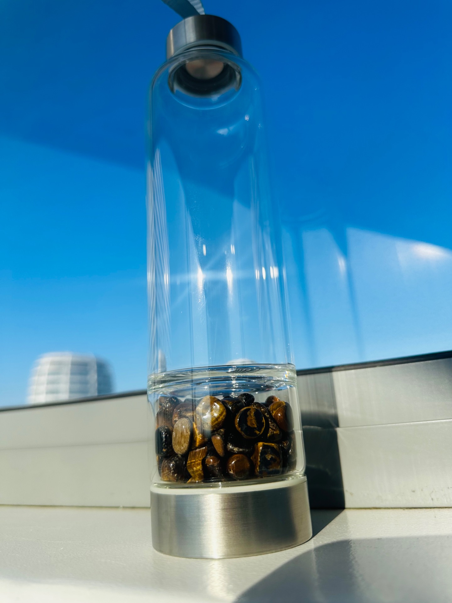 Objav silu svojho vnútra s kryštálovou fľašou s minerálom tigrie oko, ktorý je symbolom odvahy, ochrany a vnútornej stability. Táto fľaša nie je len obyčajný doplnok – je to každodenný nástroj, ktorý ti pomáha naladiť sa na energiu sebadôvery, rozhodnosti a úspechu.