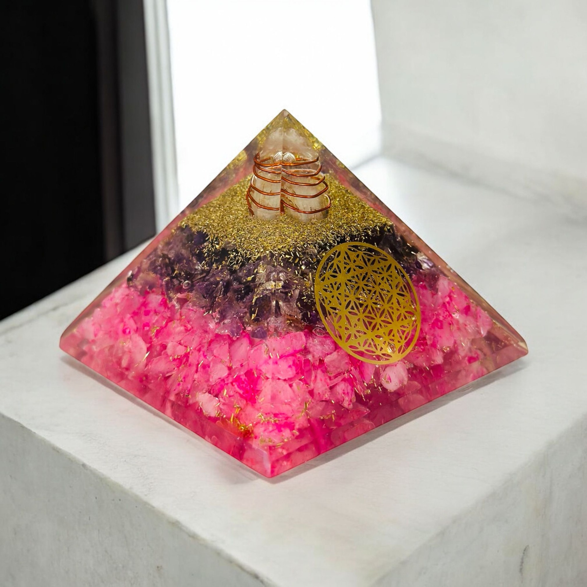 Ak túžiš, aby tvoj domov dýchal láskou, jemnosťou a harmóniou, táto pyramída je tým pravým talizmanom. Kombinácia ametystu, ruženínu a symbolu Kvetu života prináša čistú energiu. Posilňuje vzťahy, prináša odpustenie a otvára srdce novým začiatkom. Je ideálnym darom pre tých, ktorých chceš obdarovať úprimnou láskou a ochranou.