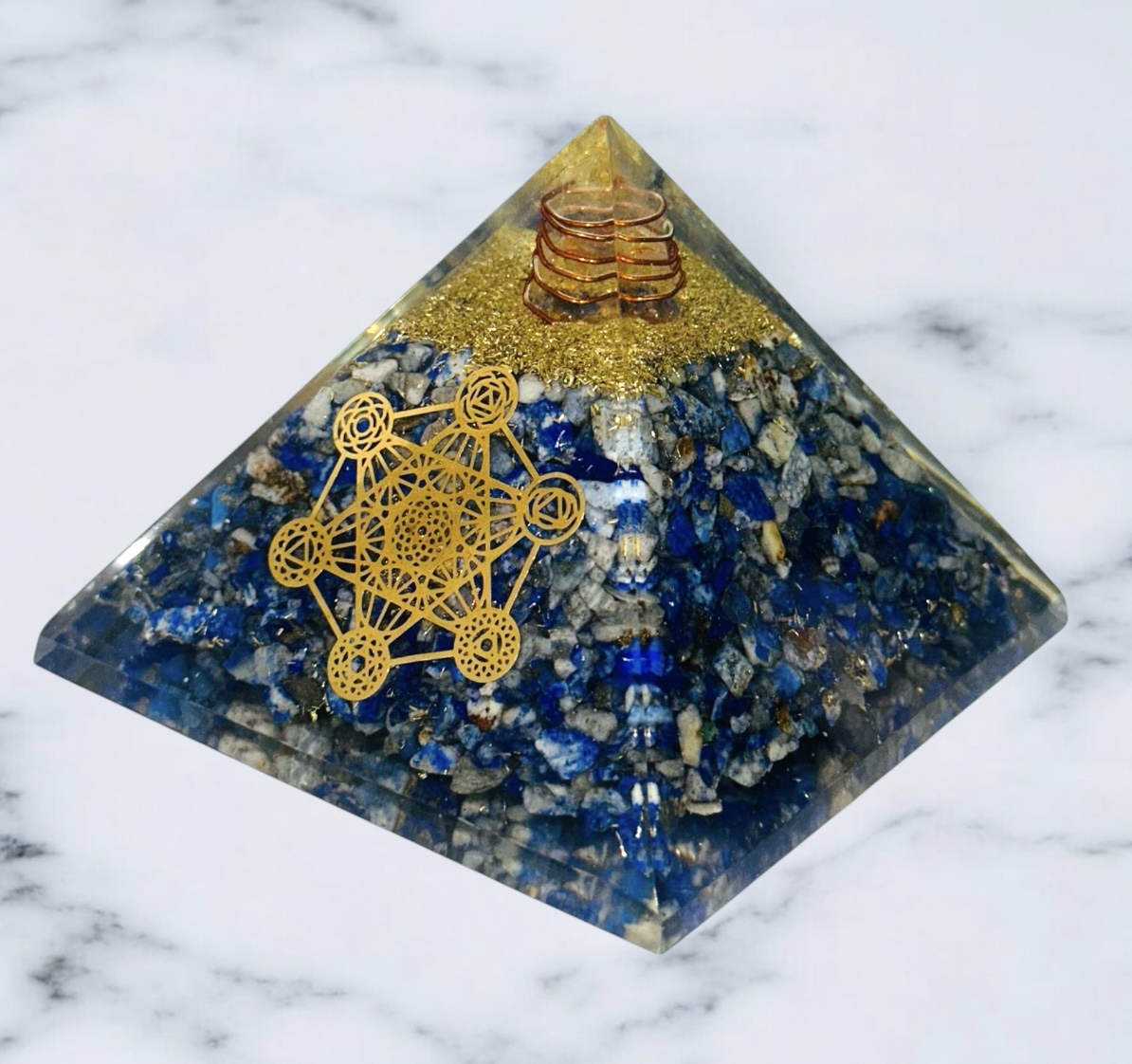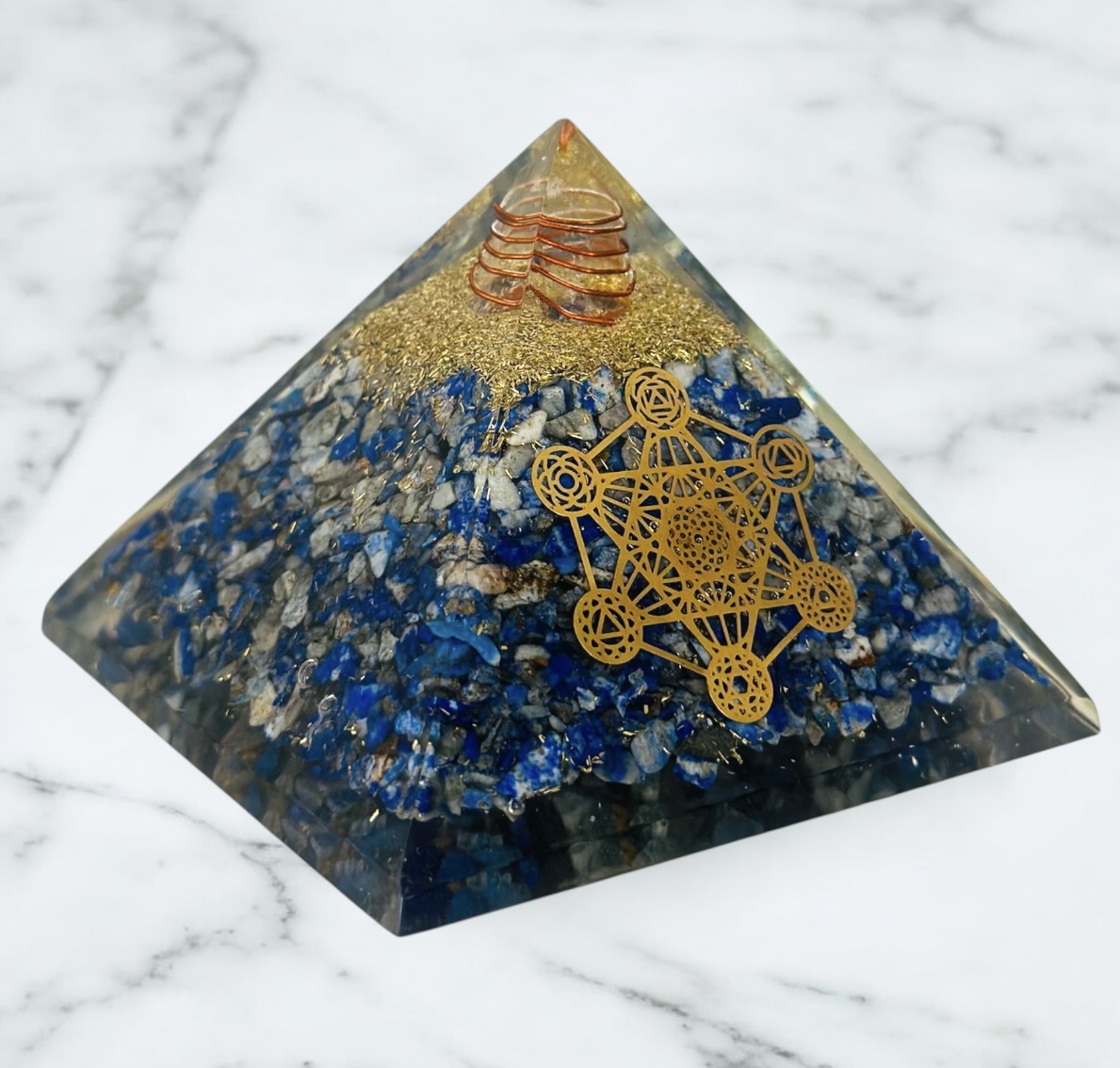 Predstav si, že držíš v rukách kľúč k hviezdam. Lapis Lazuli v spojení s posvätnou Metatronovou kockou otvára dvere do nekonečného priestoru múdrosti a videnia. Táto pyramída je sprievodcom na ceste k pravde a vnútornému prebudeniu.