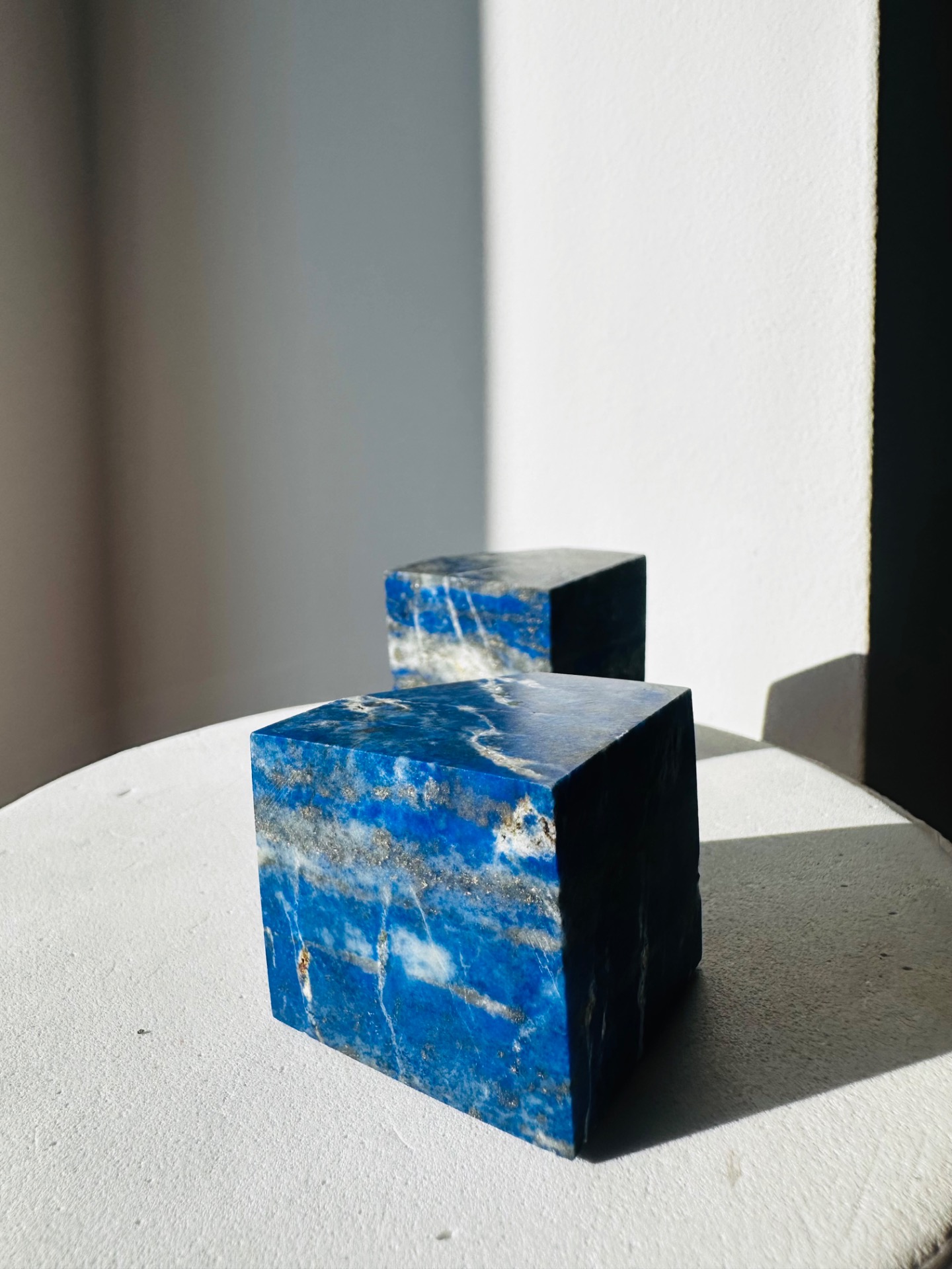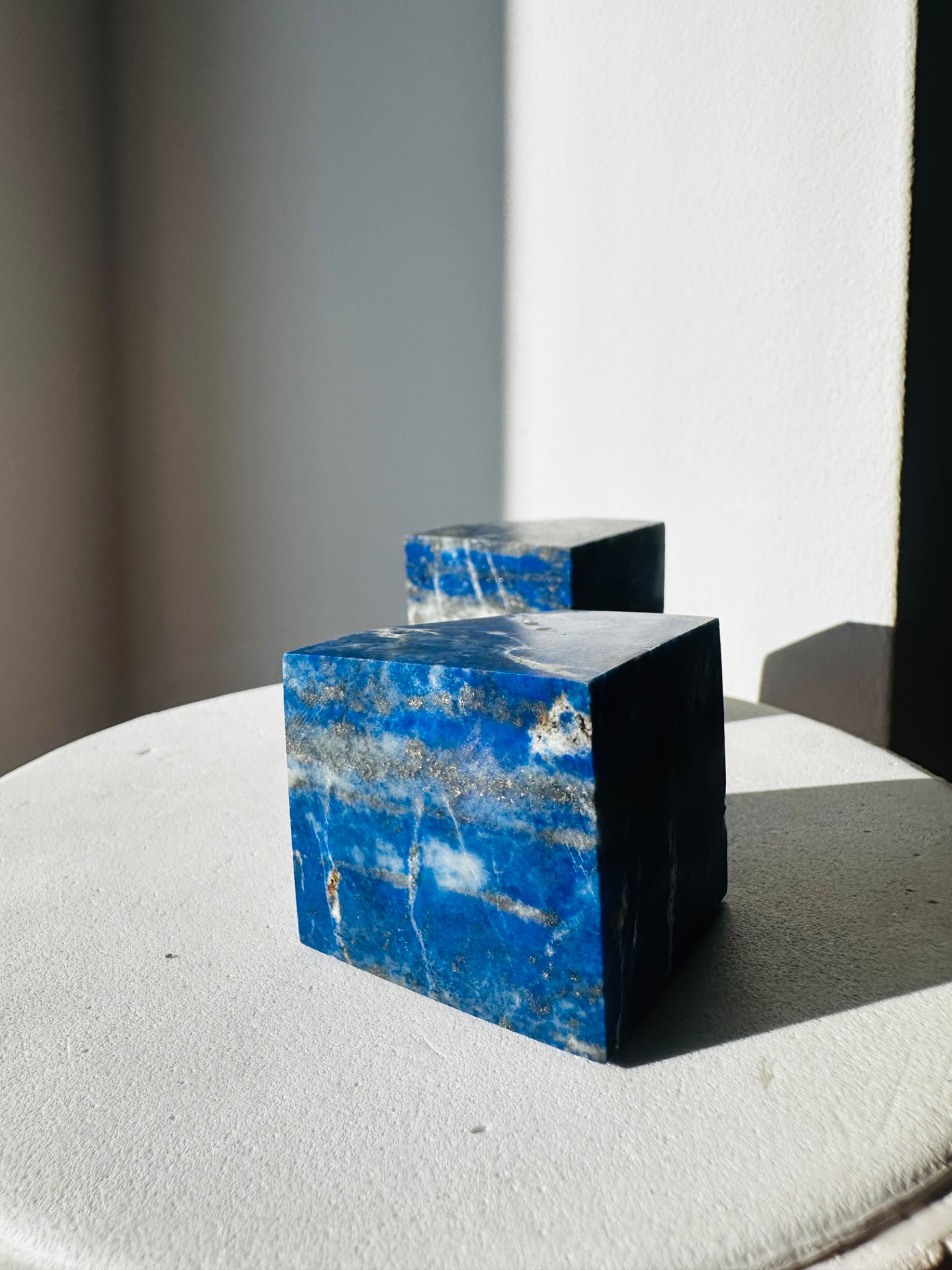 Táto masívna kocka z prírodného kameňa Lapis Lazuli je symbolom múdrosti, pravdy a duchovného poznania. Hlboká modrá farba doplnená zlatými odleskami pyritu pripomína nočnú oblohu plnú hviezd. Práve preto bol Lapis Lazuli v staroveku považovaný za jeden z najcennejších duchovných kameňov.