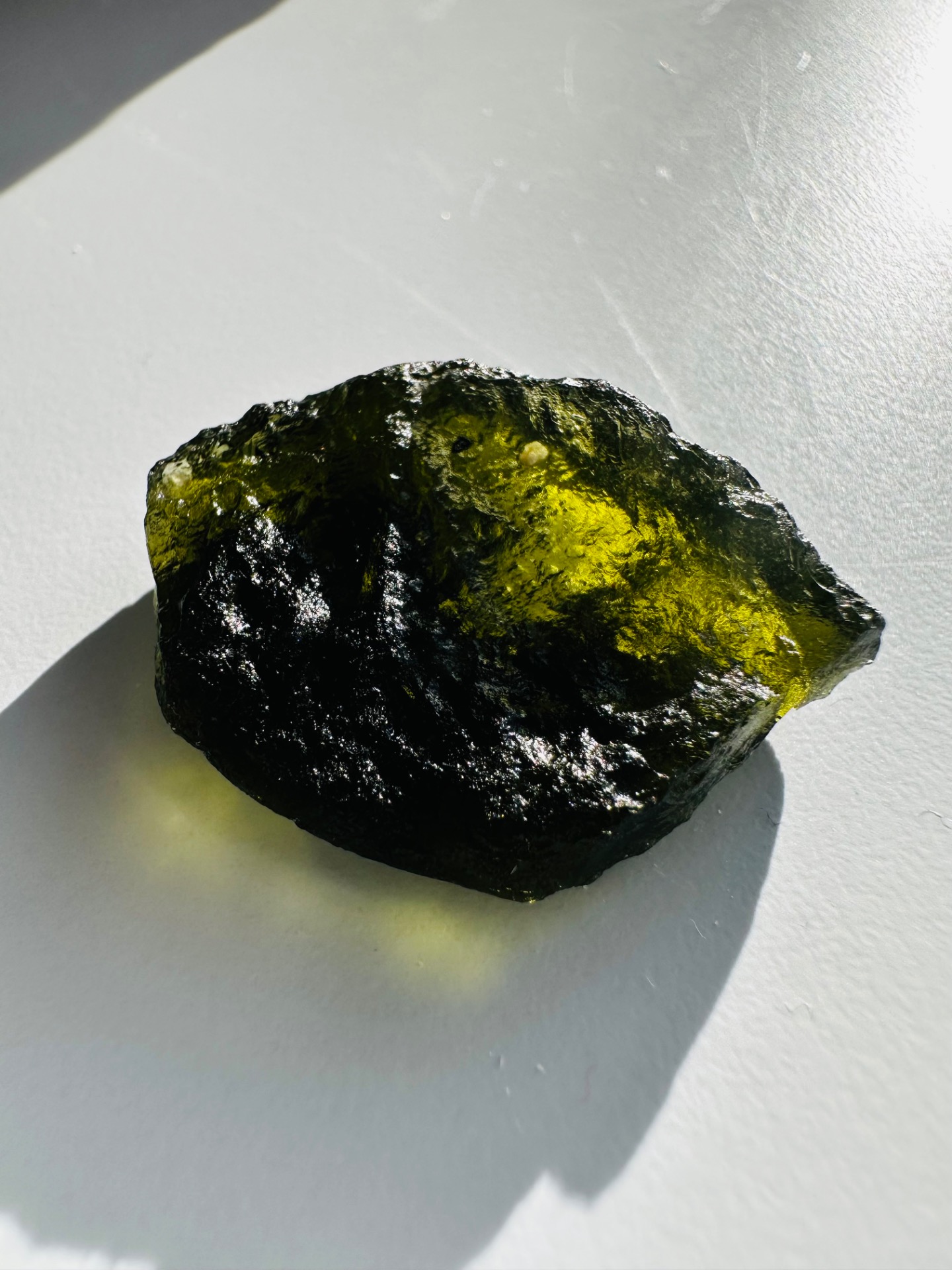 Toto je moldavit – minerál, ktorý vznikol pred viac ako 15 miliónmi rokov dopadom meteoritu. Energia vesmíru uzamknutá v jednom jedinom kameni.