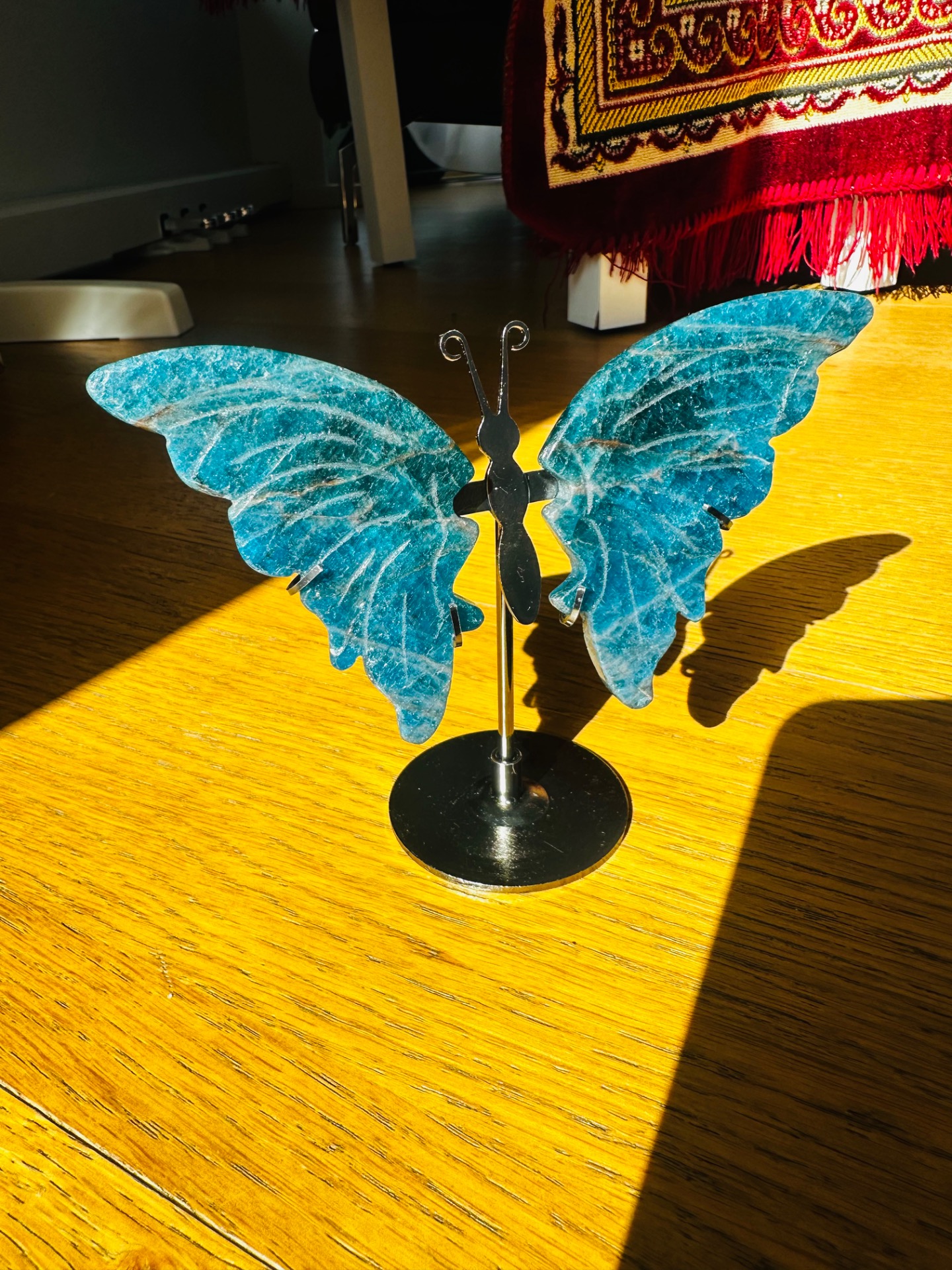 Motýľ z apofylitu symbolizuje vnútorné svetlo, jemnú transformáciu a duchovné uvedomenie. Tento jedinečný kúsok z prírodného minerálu v sebe nesie čistú a vysokú vibráciu, ktorá podporuje pokoj, jasnosť mysle a prehĺbenie intuície.