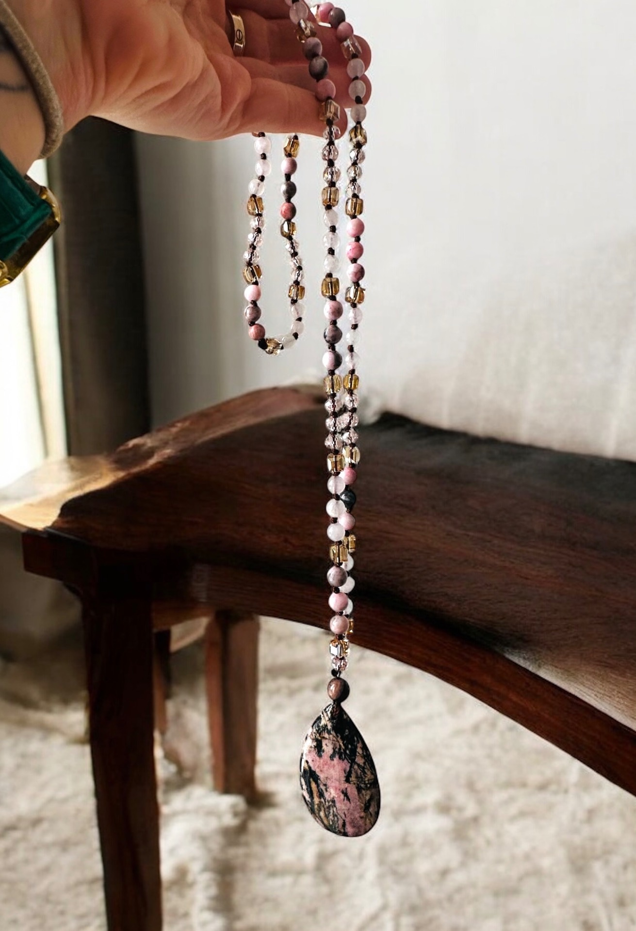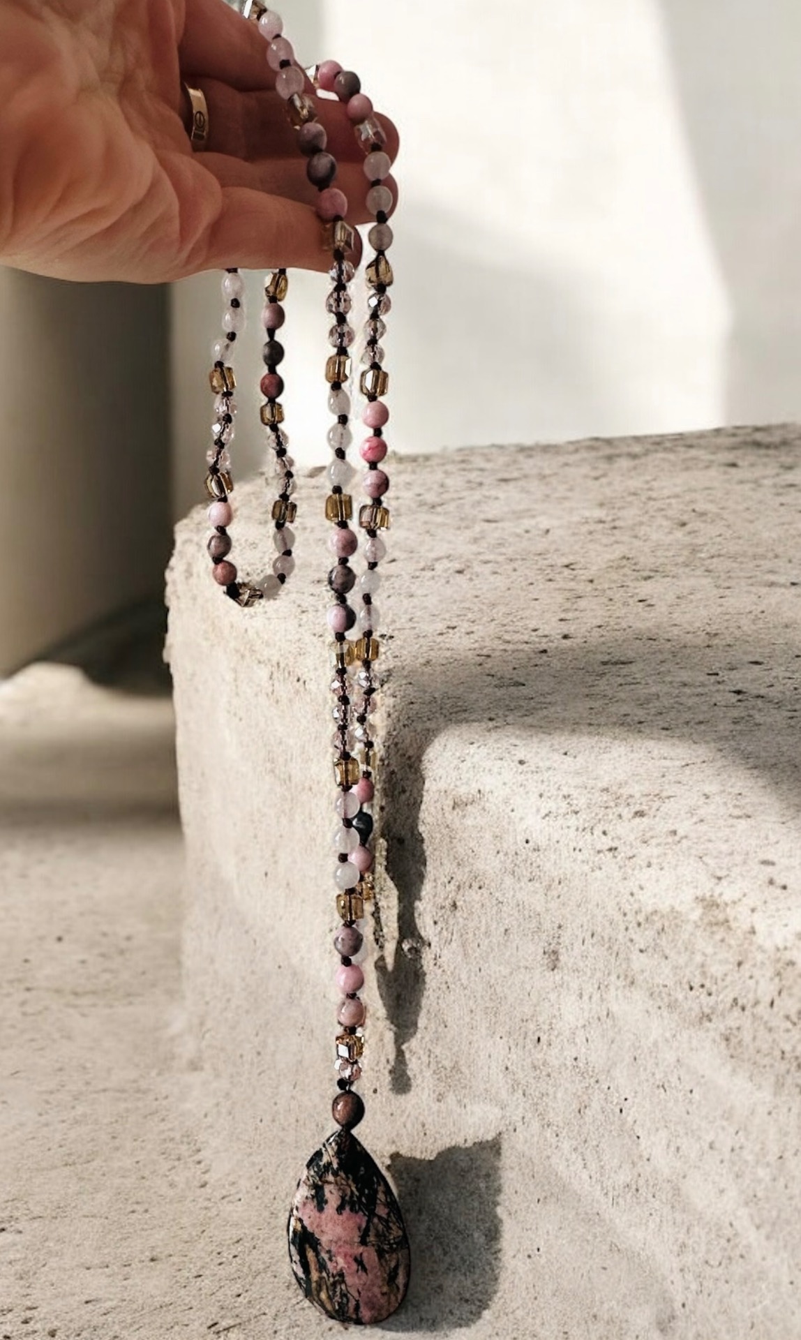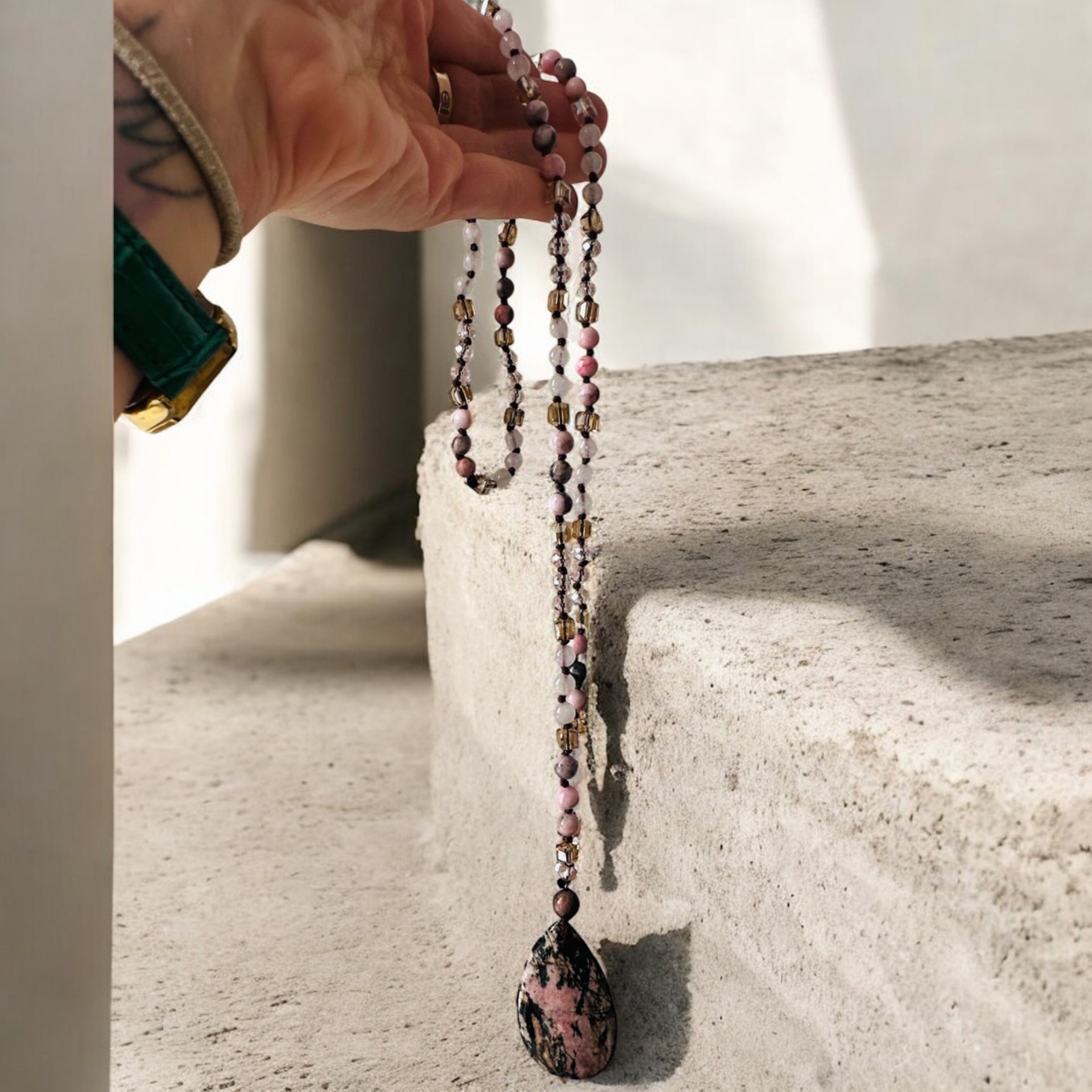 Rodonitový náhrdelník – kameň uzdravenia srdca a emocionálnej rovnováhy