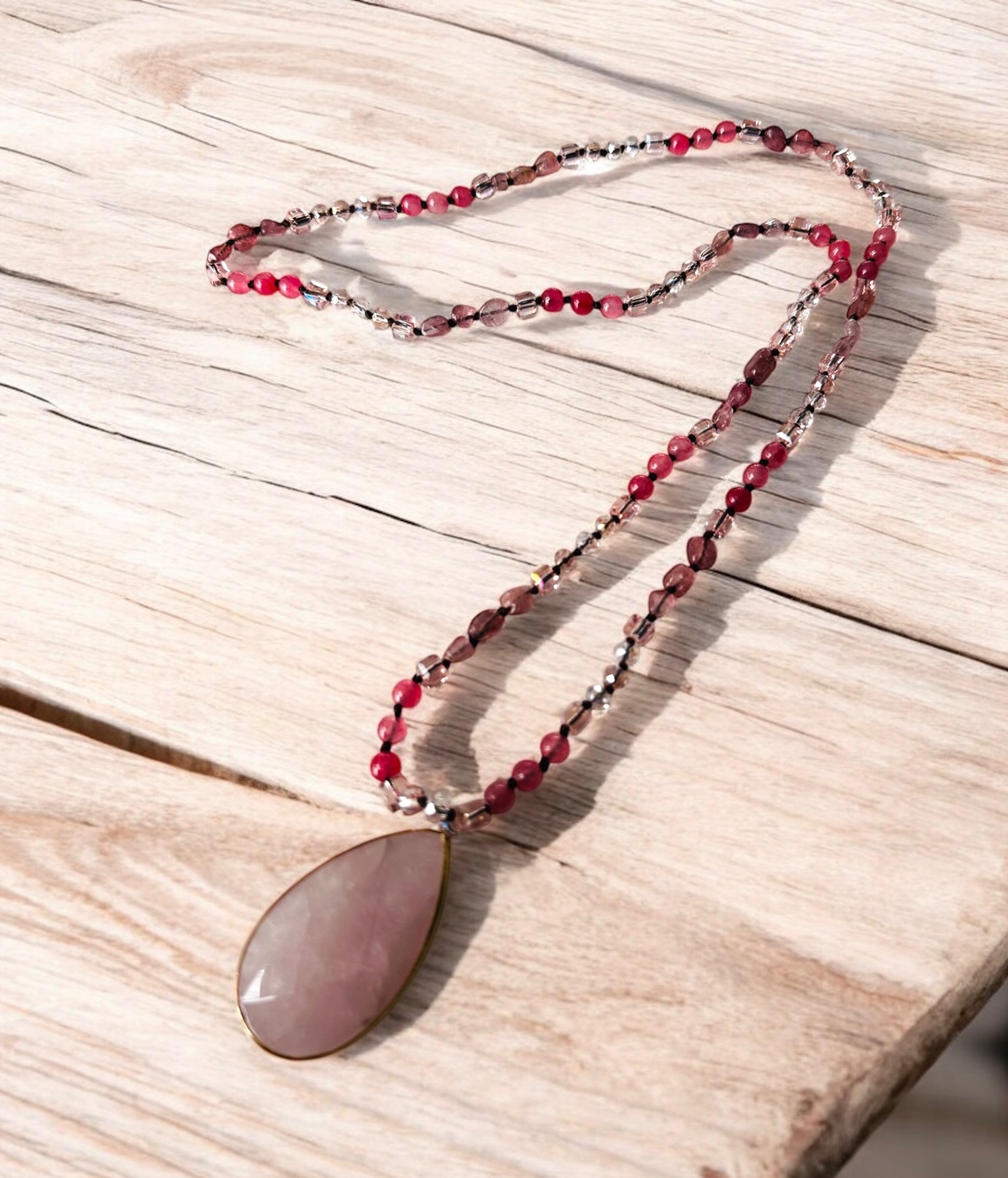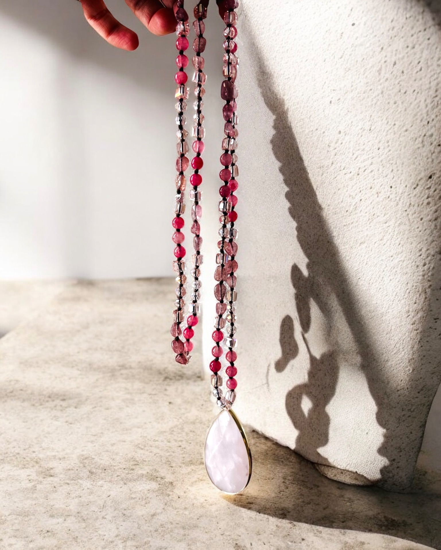 Náhrdelník má dĺžku približne 80 cm, vďaka čomu prirodzene splýva po tele a pôsobí elegantne aj nenápadne. Je vhodný na každodenné nosenie, meditáciu alebo ako osobný talizman so zámerom lásky a rovnováhy.