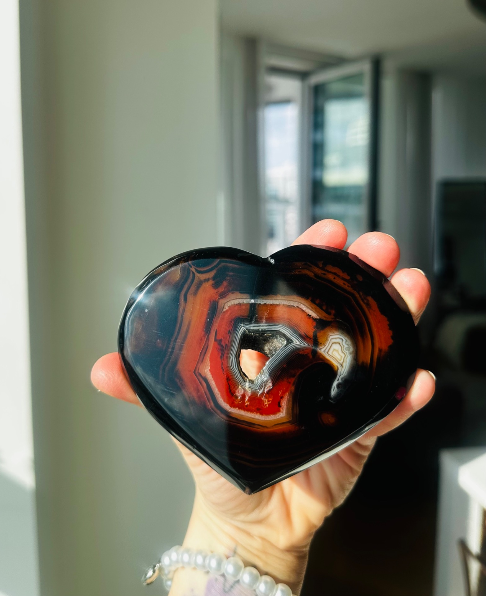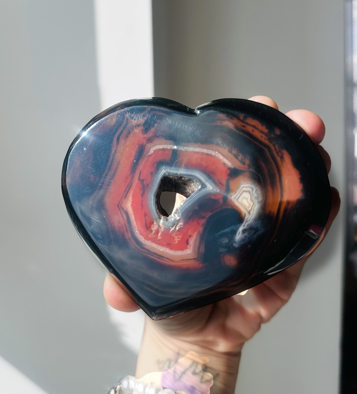 Toto srdce z červeného achátu je nielen krásnou dekoráciou, ale aj symbolom stability, ochrany a prirodzenej sily prírody, ktorá môže harmonizovať energiu vášho priestoru.