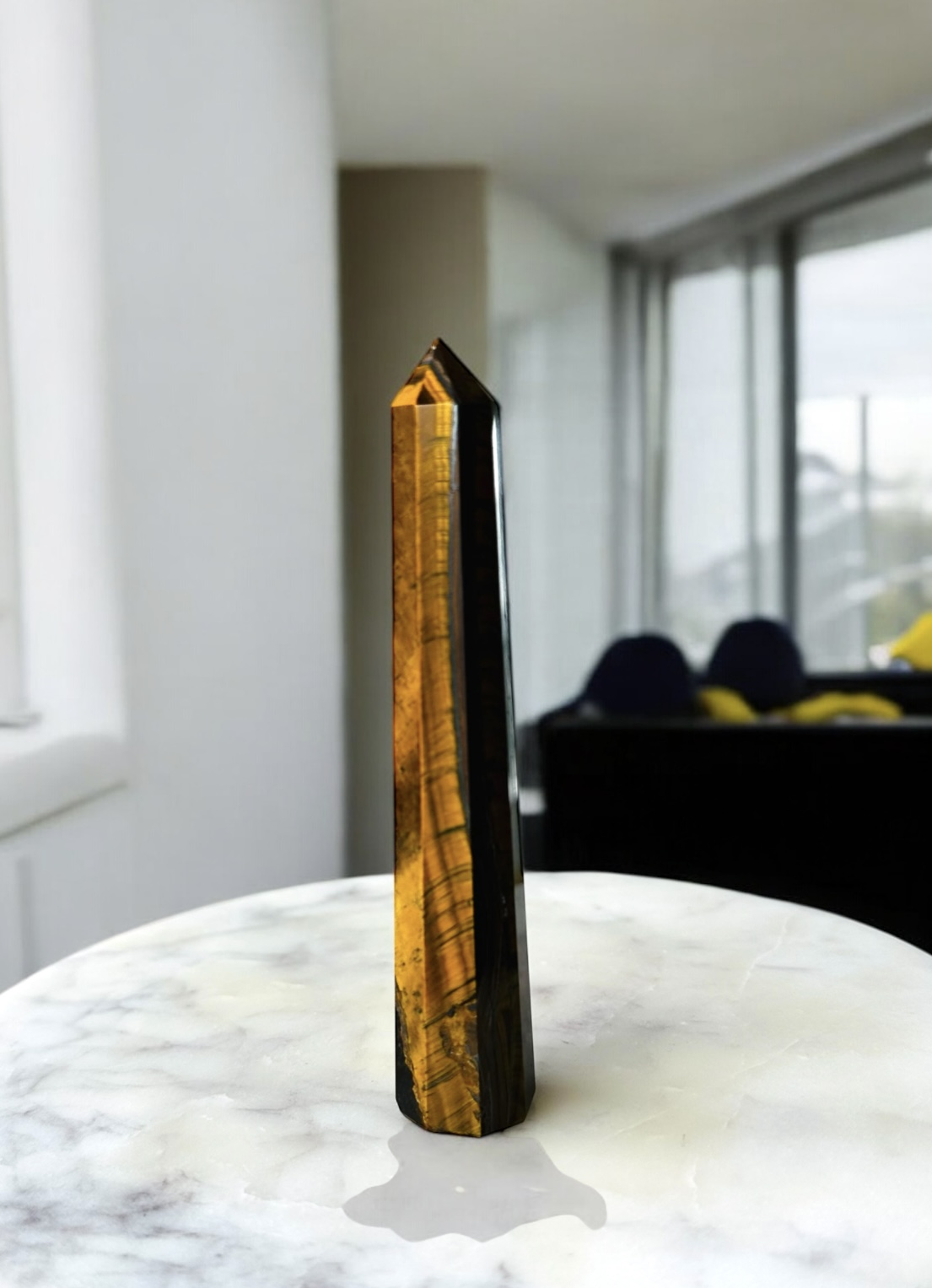 Kvantový obelisk z tigrieho oka – aktivácia odvahy a finančného vedomia