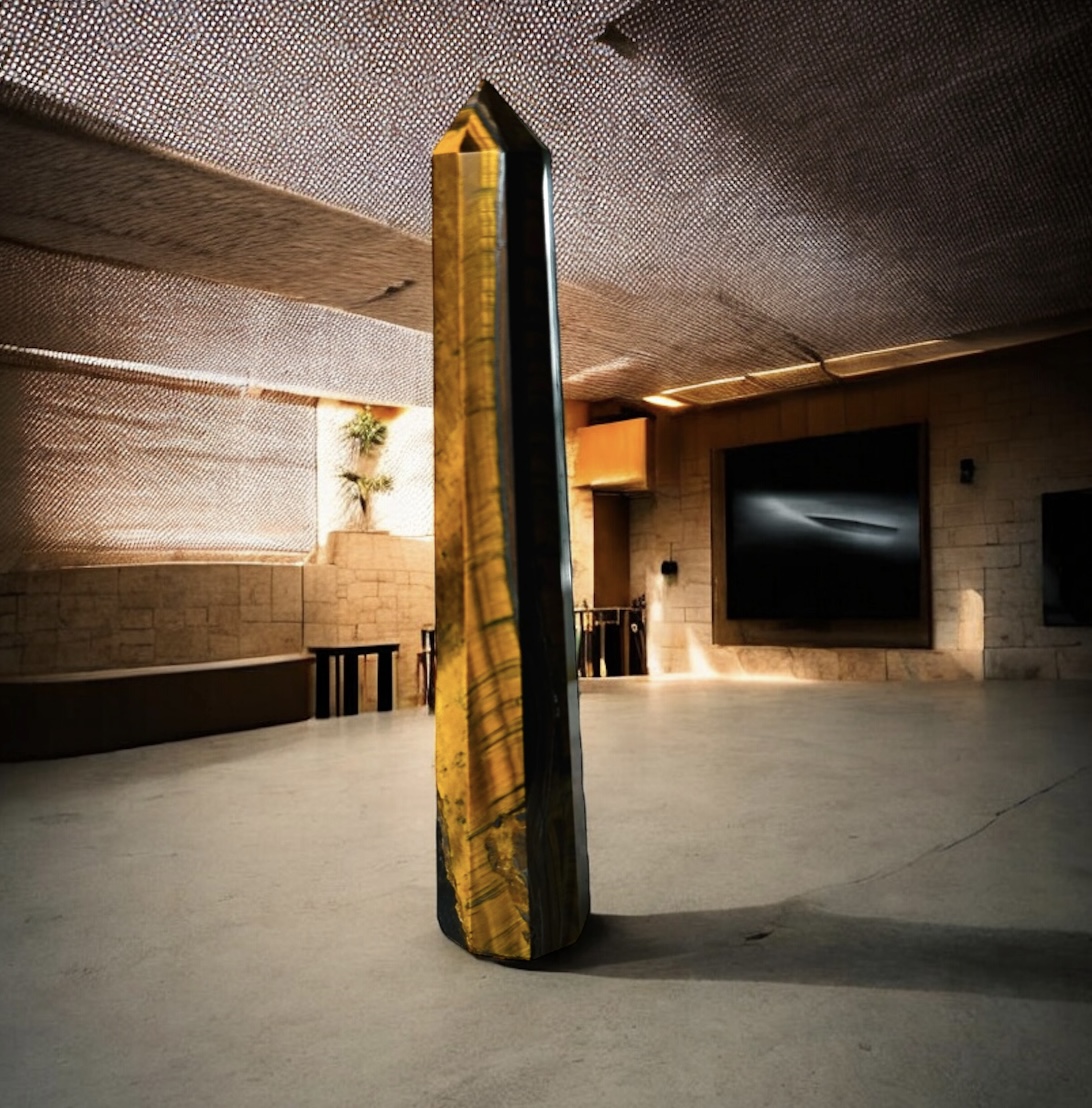 Jeho charakteristická zlatohnedá štruktúra symbolizuje silu, stabilitu a jasnosť. V priestore pôsobí ako kotva – pomáha sústrediť sa, vnímať veci realisticky a konať s istotou.